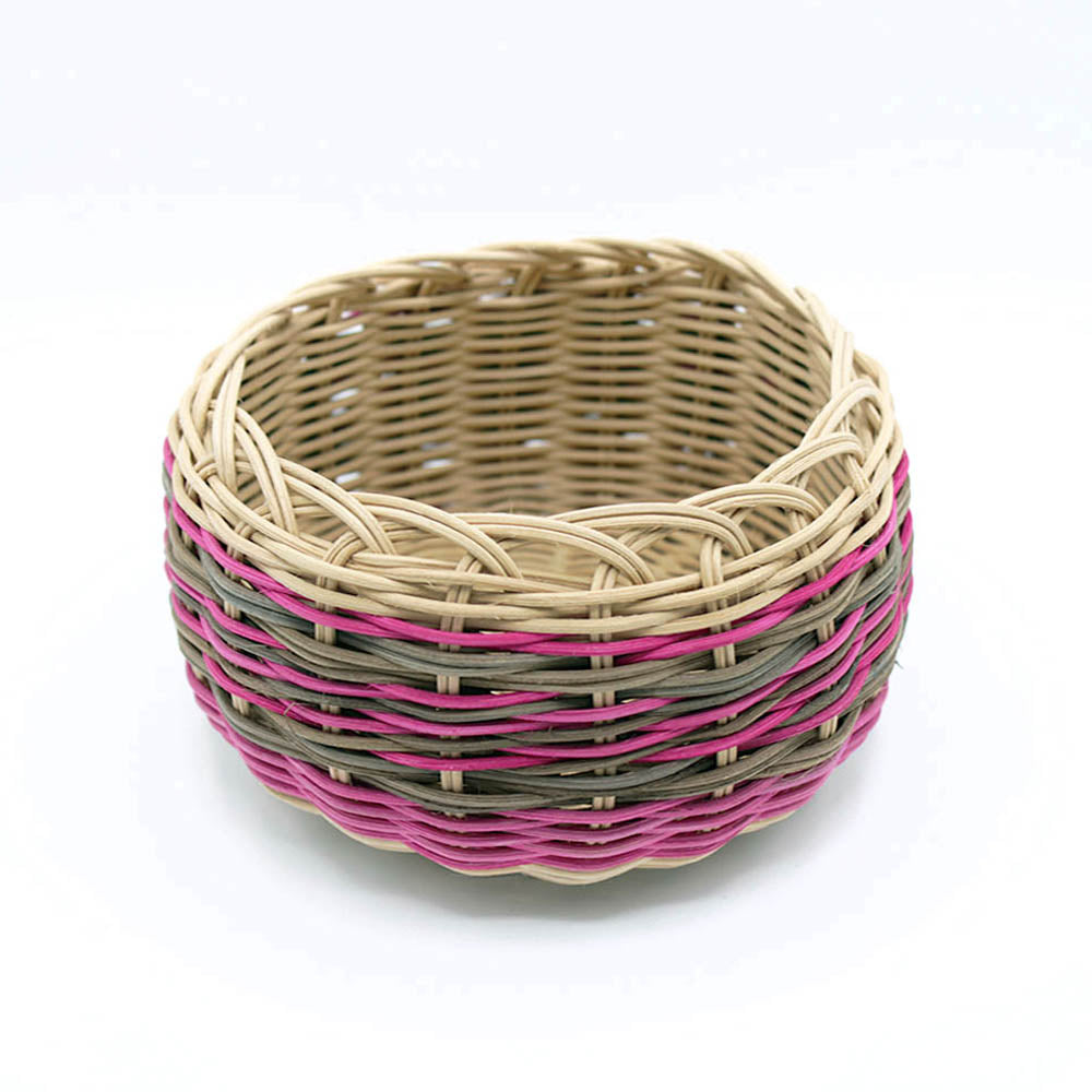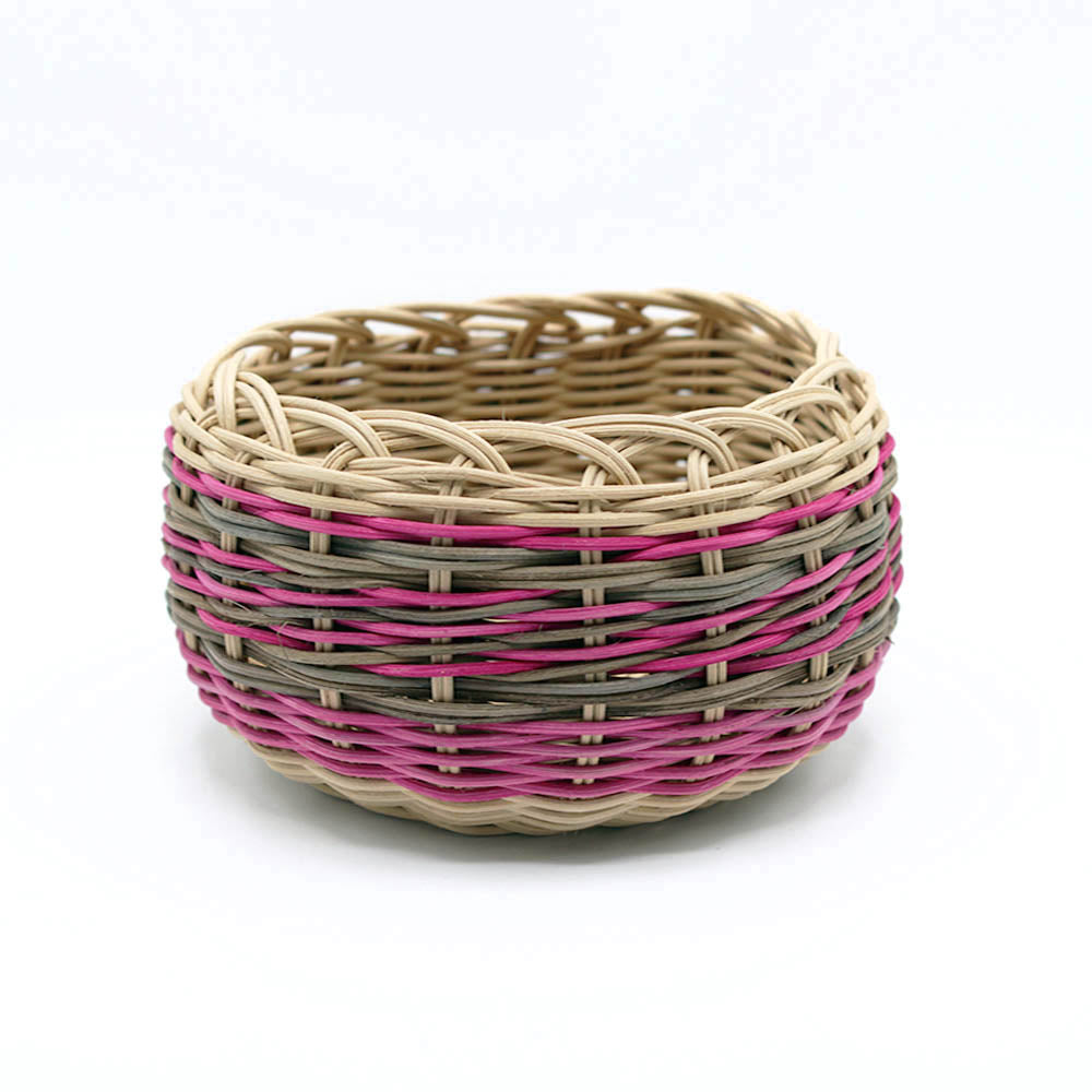 Beautiful double wall basket by Cherokee artist Lydia Vann. Commercial reed and dye.