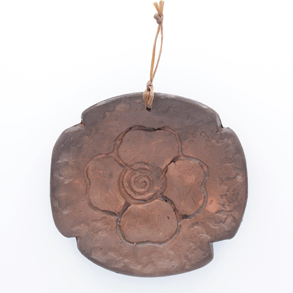Handcrafted clay ornament by Cherokee artist Elisa Smith.  Imitation sinew tie for easy hanging.