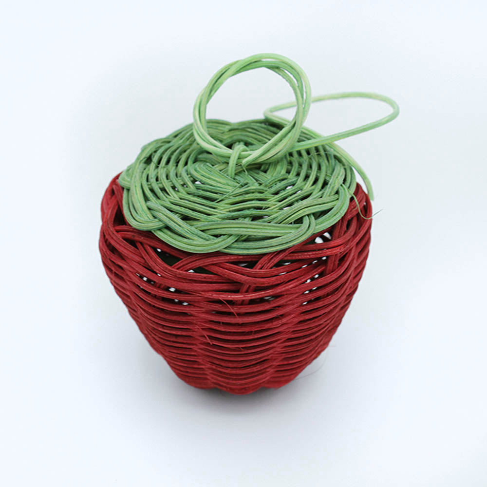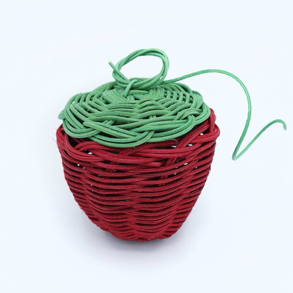 Absolutely adorable mini strawberry shaped basket with detachable lid by Cherokee National Treasure Mike Dart.  Commercial reed and dye.