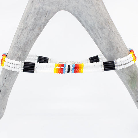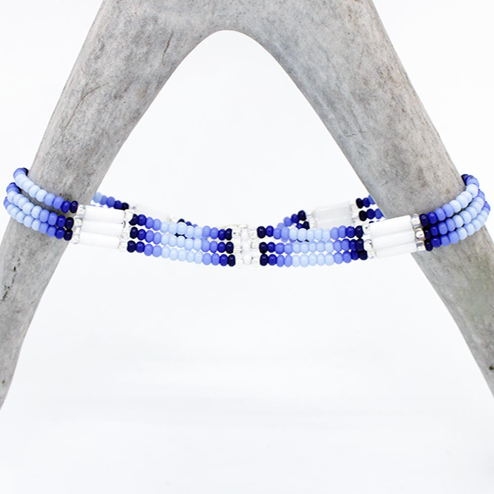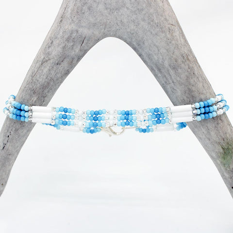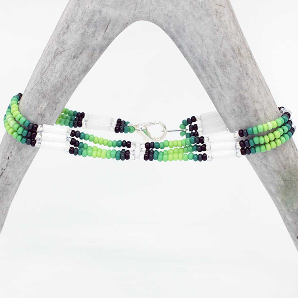 Beautifully beaded, triple string bracelets by Cherokee artist Darrell Bolin.