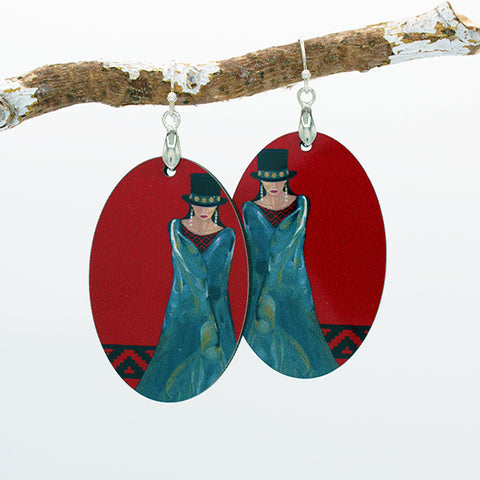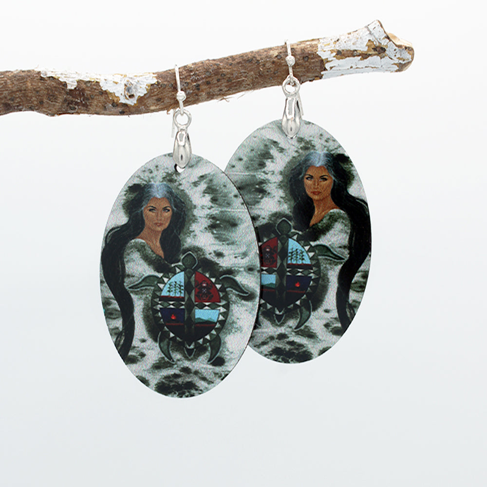 Earrings from Rabbit Studios featuring the artwork of the Cherokee National Treasure Traci Rabbit.