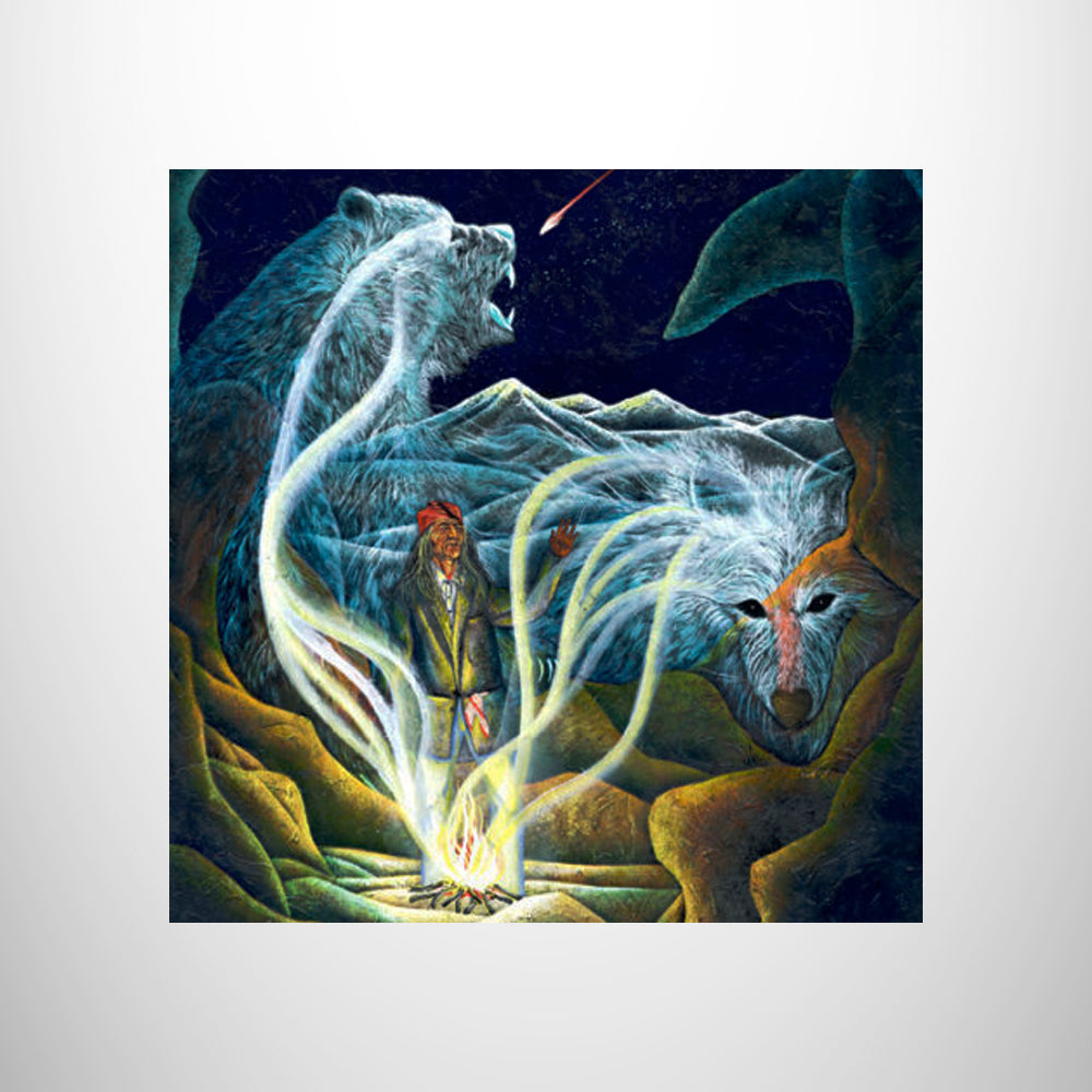 "Cherokee" print by Cherokee National Treasure Bill Rabbit on tile. Tile comes with a kickstand backing for easy shelf or desk decorating.