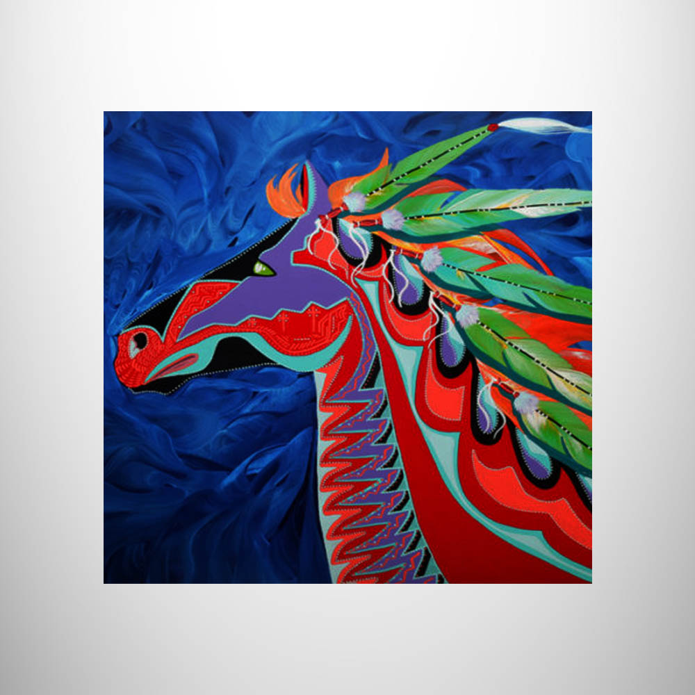 "Wind Dancer" print on tile by the late Cherokee National Treasure Bill Rabbit.  Tile comes with a kickstand backing for easy shelf/desk decorating.